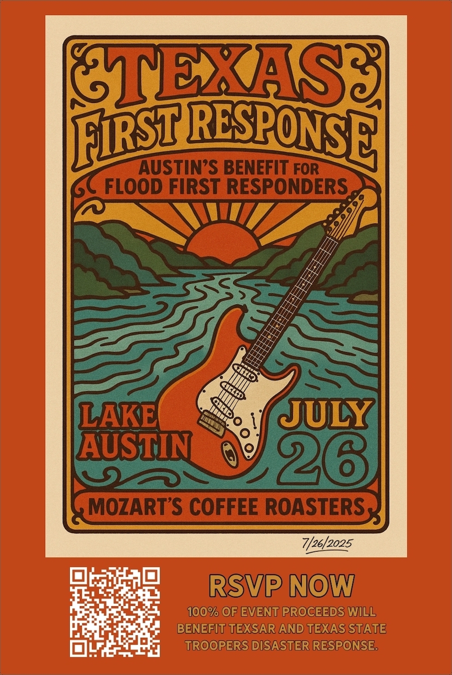 100% of ALL proceeds will be donated to Texas Search & Rescue (TEXSAR) and Texas State Troopers Disaster Response.